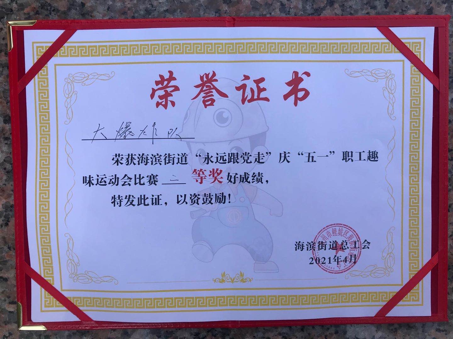 为庆祝共产党建党100周年,培养爱国主义情怀,增强集体荣誉感,4月30日下午,福建省泉州市第一建设有限公司的“大爆炸”职工代表队参加了由海滨街道总工会开展的“永远跟党走”庆“五一”职工趣味运动会,并取得了二等奖的好成绩。参加此次活动的有海滨街道在职职工共计16个队伍。